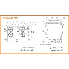 Rekuperační jednotka EHR 325 Akor je výkonnější provedení jednotky EHR 280 Akor, rozměry obou provedení jsou stejné.